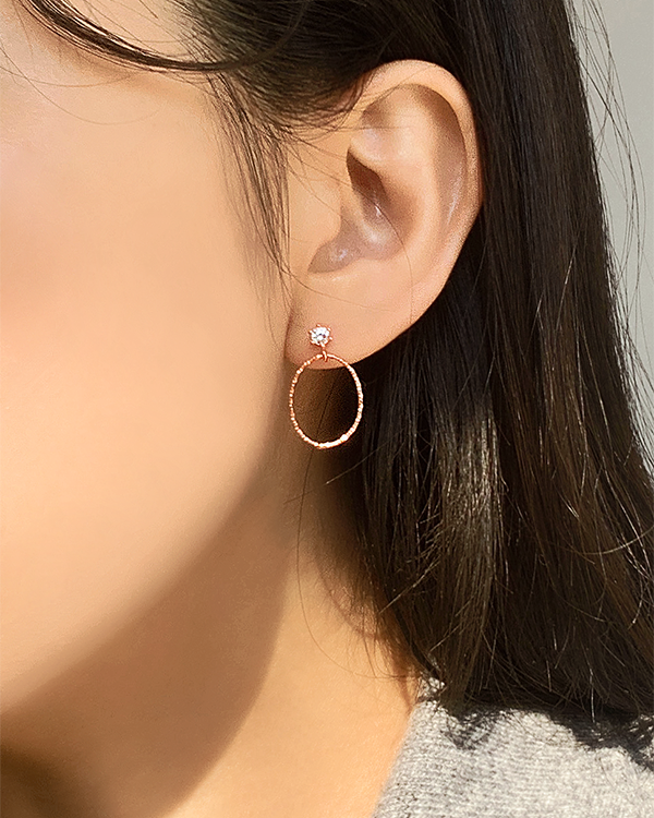 [무배] 실버925 로즈골드 큐빅 컷팅 타원 드롭 귀걸이