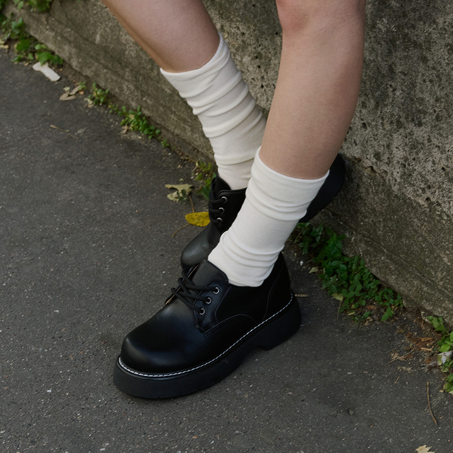 (12/23, 흑 예약) 라운드 토 스티치 레이스업 로퍼 412215009 (4.5cm)