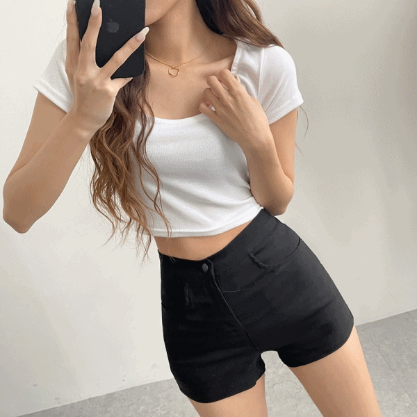 목늘어남방지 쫀득 크롭 U넥 반팔티