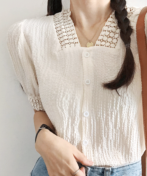 봄한방울 브이넥 펀칭 레이스 반팔 블라우스(bl677)