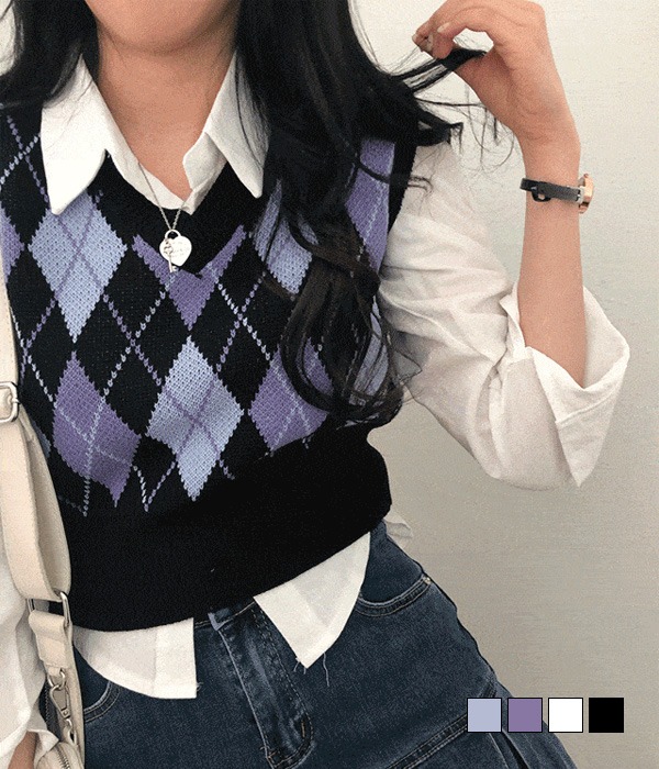 [무료배송] 가가 아가일 크롭 조끼 베스트