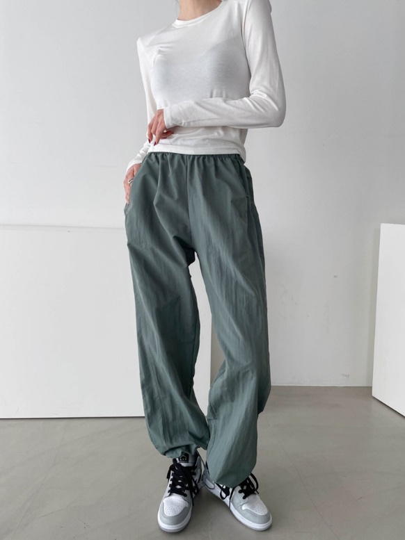 니즈 조거 팬츠 ( 밑단 스트링 나일론 신상 밴딩 바지 ) - 화이트, 카키, 블랙