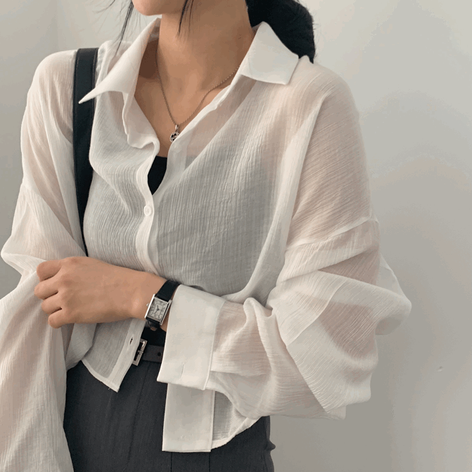 [실물대존예!/만능코디] 분위기 있는, 여리핏 시스루 크롭 셔츠/남방;3col
