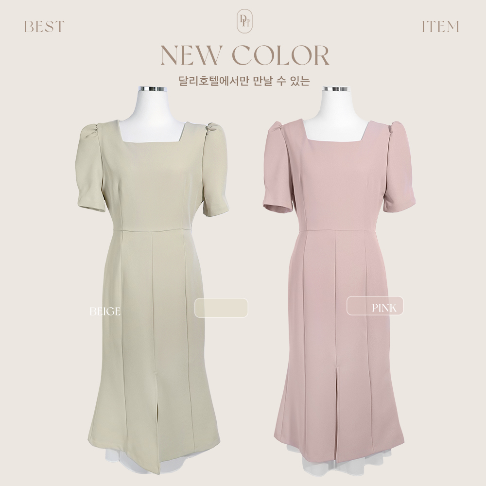 [Dali made][주문폭주]엘라 배색 쉬폰 슬릿 반팔 롱 원피스(하객룩)