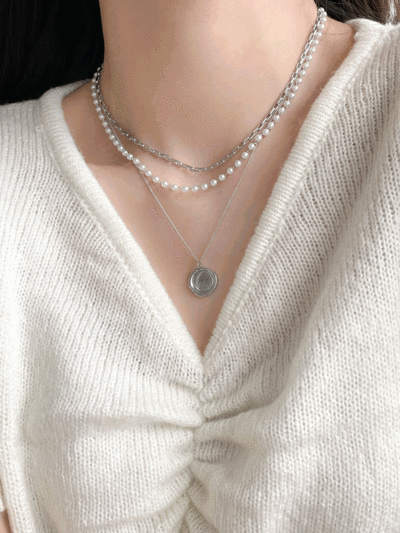 스템프 코인 진주 레이어드 목걸이 세트(2color)