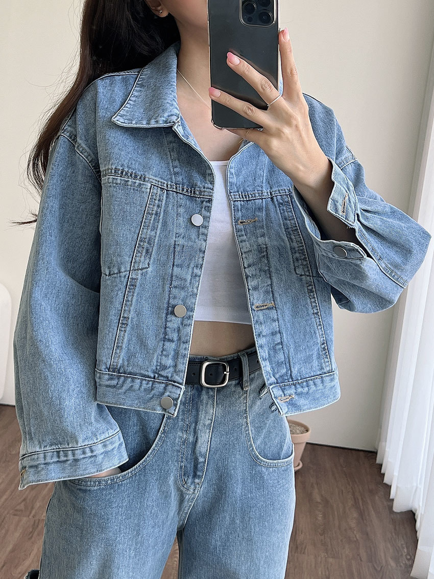 오버핏 심플 와이드 숏 데님 자켓 HAIBY 청자켓