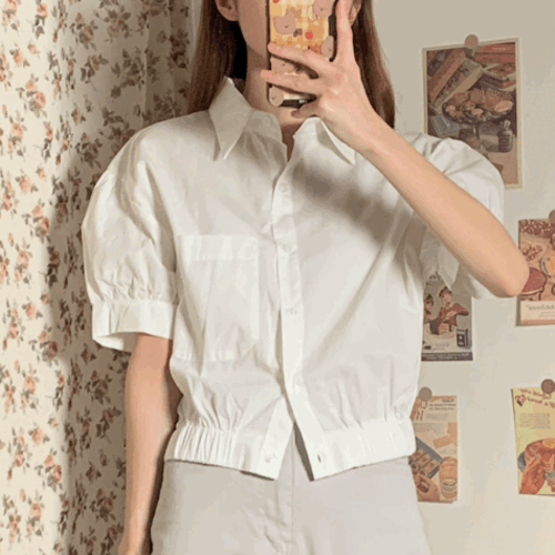 착한 가격 고죠 코튼 카라 포켓 밴딩 반팔 퍼프 크롭 셔츠 남방 (3c)