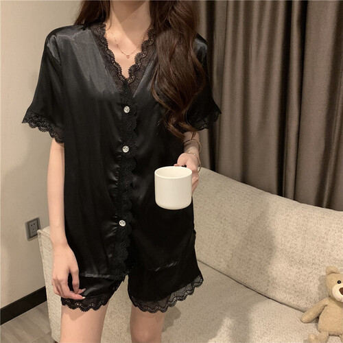 제니 실크 잠옷 여름 반팔 실키 레이스 커플 우정 부모님 파자마 파티 투피스 세트