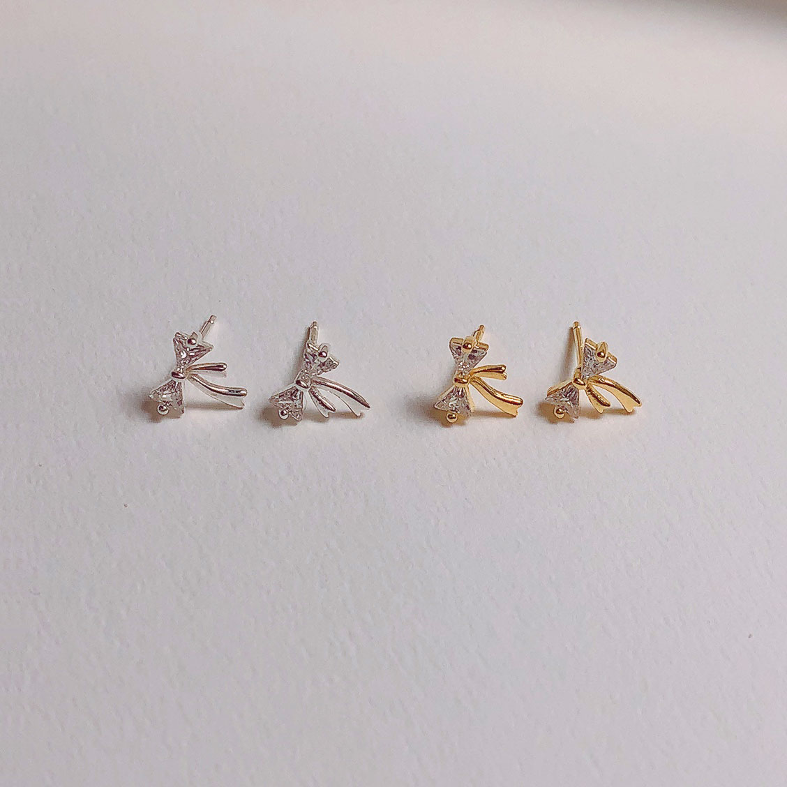 실버925 선물같은 리본 작은 스터드 귀걸이 2color (골드 실버)