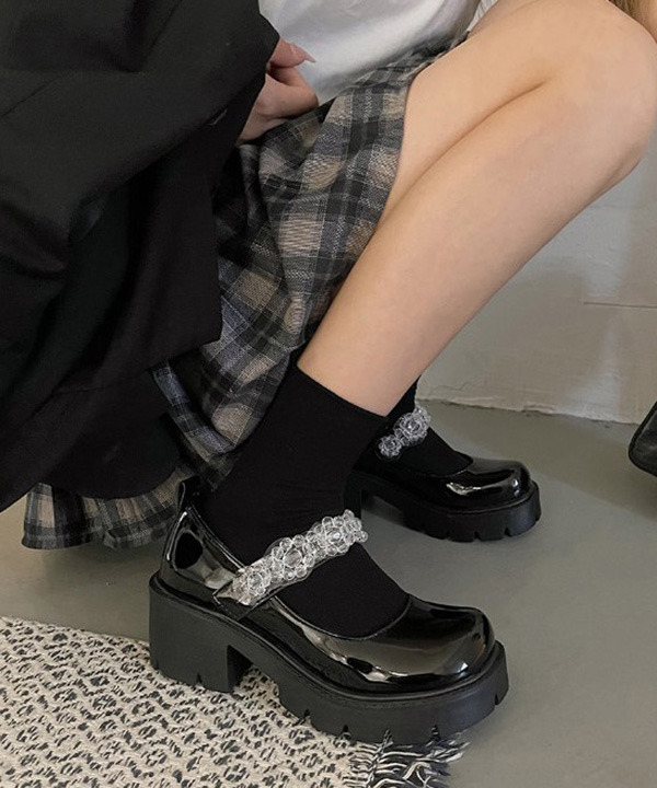 무료배송 크리스탈로즈 통굽펌프스힐 (블랙,아이보리) (합성가죽 / 5cm)