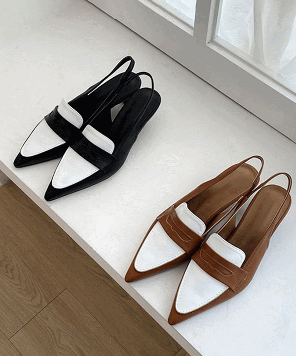 [바배] 플래닛 배색삼각코 심플 어반 데일리 슬링백힐 (블랙,브라운)