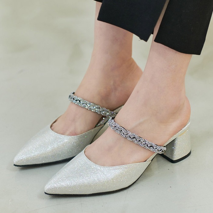 HS0043 국내제작 글리터 블링스트랩 통굽 멋내기 힐 5cm
