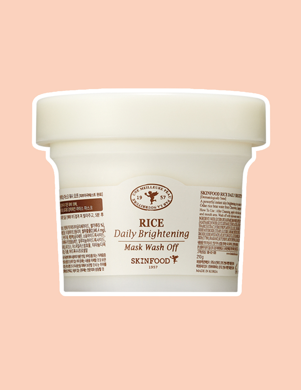 화장품법에 따라 기재, 표시하여야 하는 모든 성분정제수, 글리세린, 카프릴릭/카프릭트라이글리세라이드, 쌀가루(50,000 ppm), 글라이콜다이스테아레이트, 세테아릴알코올, 아크릴레이트코폴리머, 1,2-헥산다이올, 티타늄디옥사이드, 하이드록시프로필메틸셀룰로오스, 에틸헥실글리세린, 소듐하이드록사이드, 세테아릴글루코사이드, 카보머, 쌀겨수(200 ppm), 트라이에톡시카프릴릴실레인, 알루미늄하이드록사이드, 쌀추출물(100 ppm), 소듐폴리아크릴레이트, 부틸렌글라이콜, 아스퍼질러스발효물, 글루코오스, 향료, 하이드록시시트로넬알, 리날룰