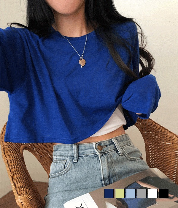 [무료배송] 여리함에 치이는 크롭 슬라브 티셔츠