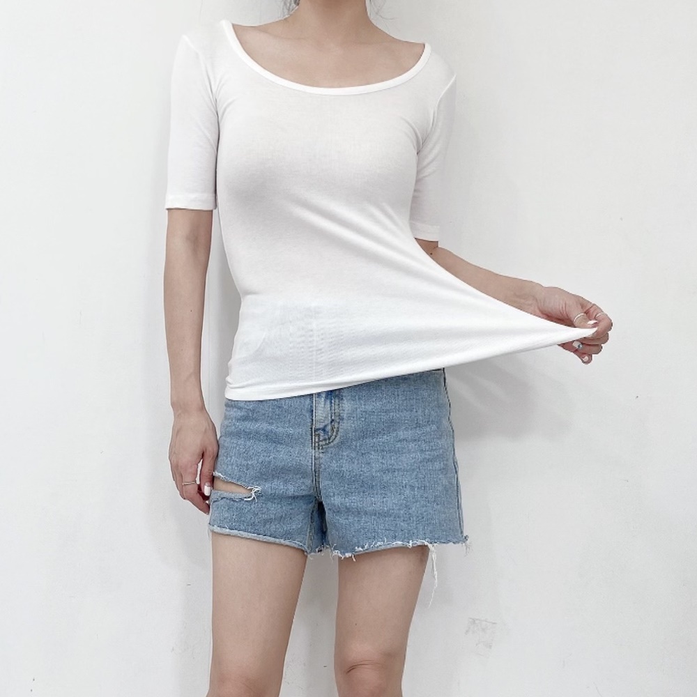 여자 7부 흰티 쫄티 유넥 스판 여름 이너 반팔 티셔츠 흰색 블랙