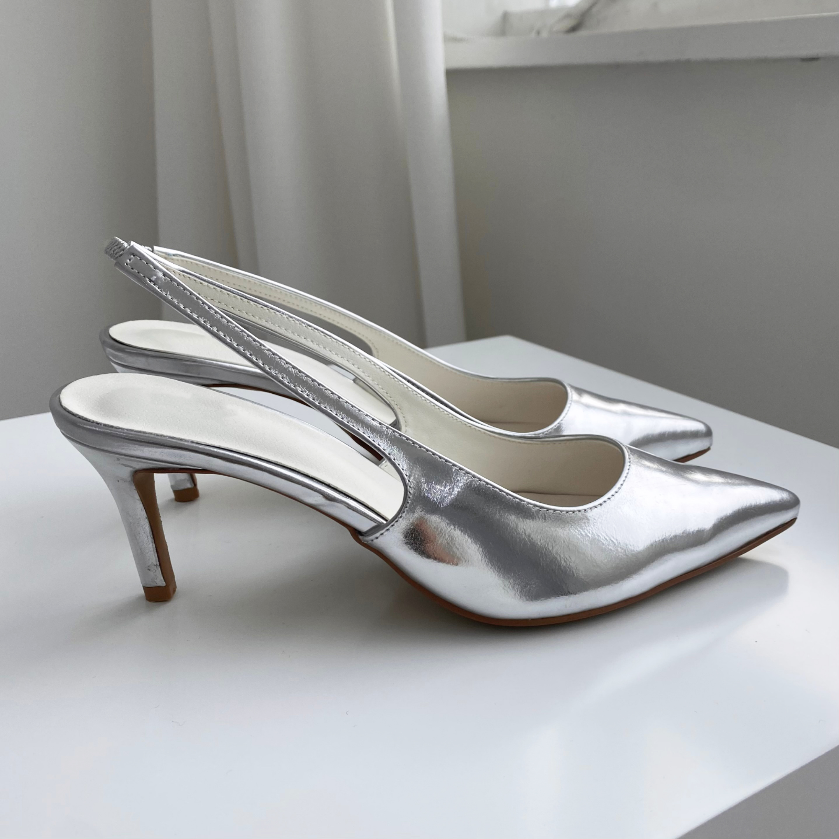 (당일출고/모델소장) 실버 스틸레토 슬링백 힐 7cm