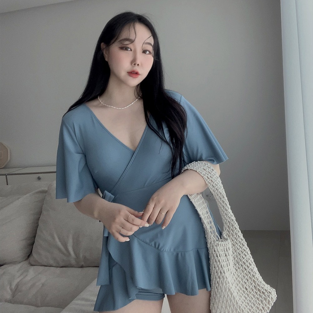 7754 [2사이즈]반팔 랩스커트 모노키니 수영복(3color)