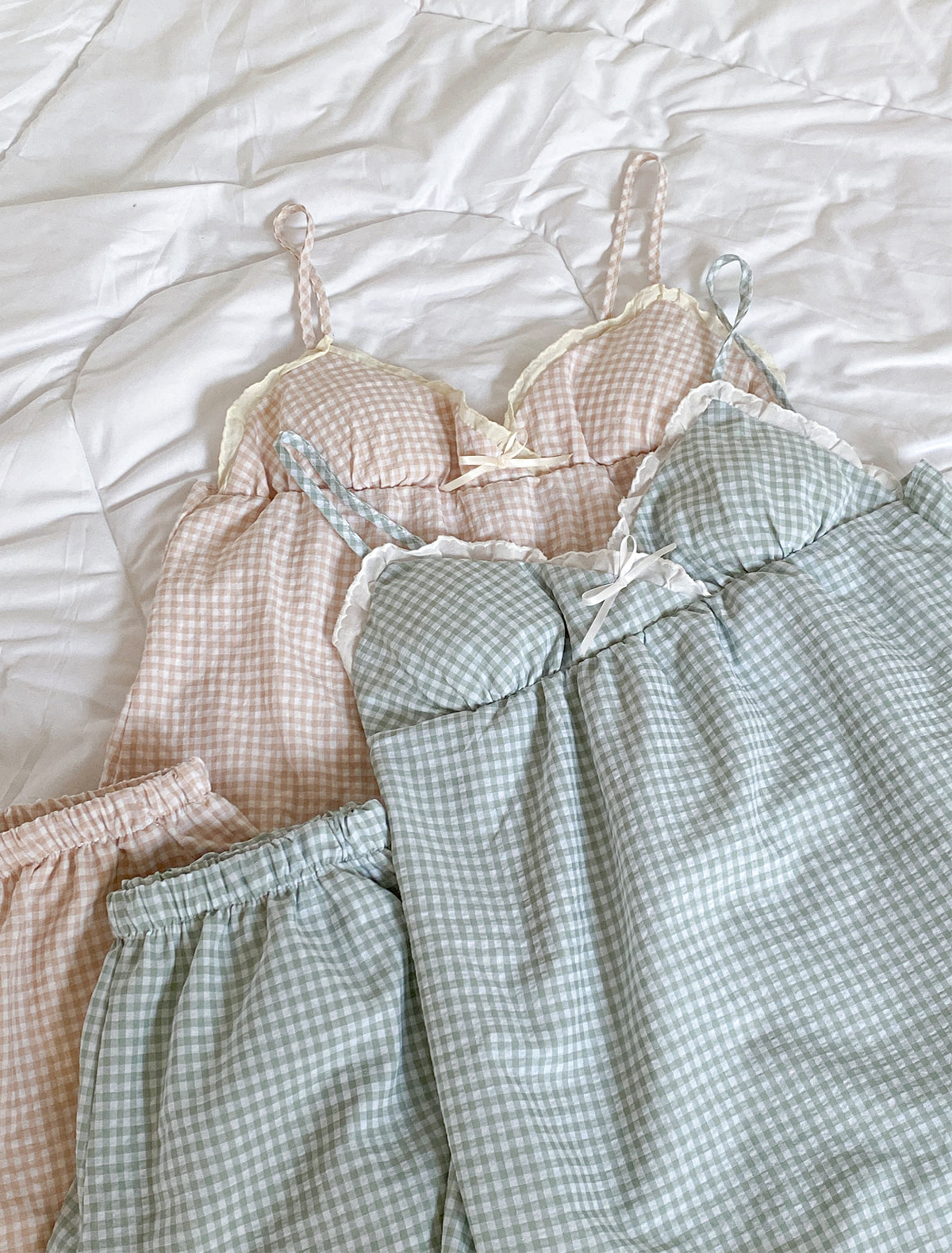 캡내장 체크레이스 나시 파자마세트