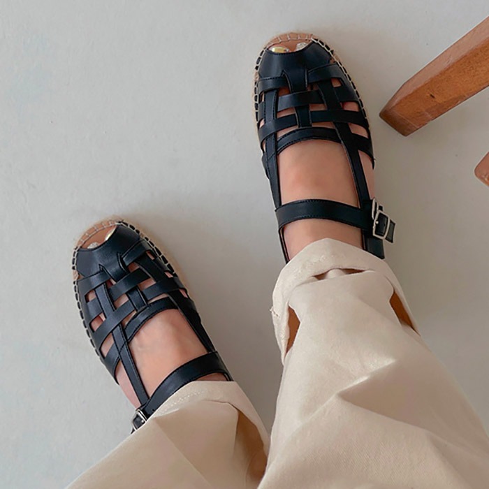 OMM1007_에스파듀 짜임 펀칭 스트랩 슬링백 샌들 3.5cm