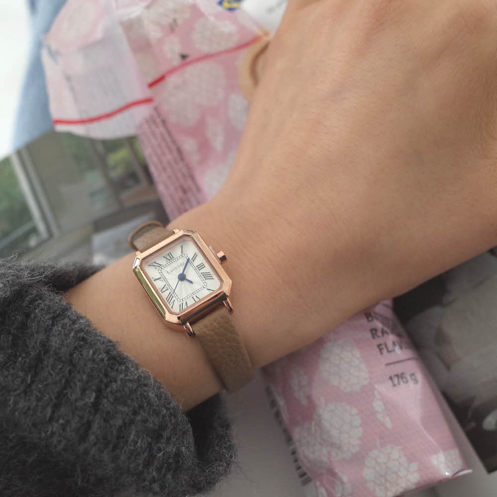 천연 소가죽 밴드 8각 스퀘어 로마 숫자 네모 초침 손목 시계