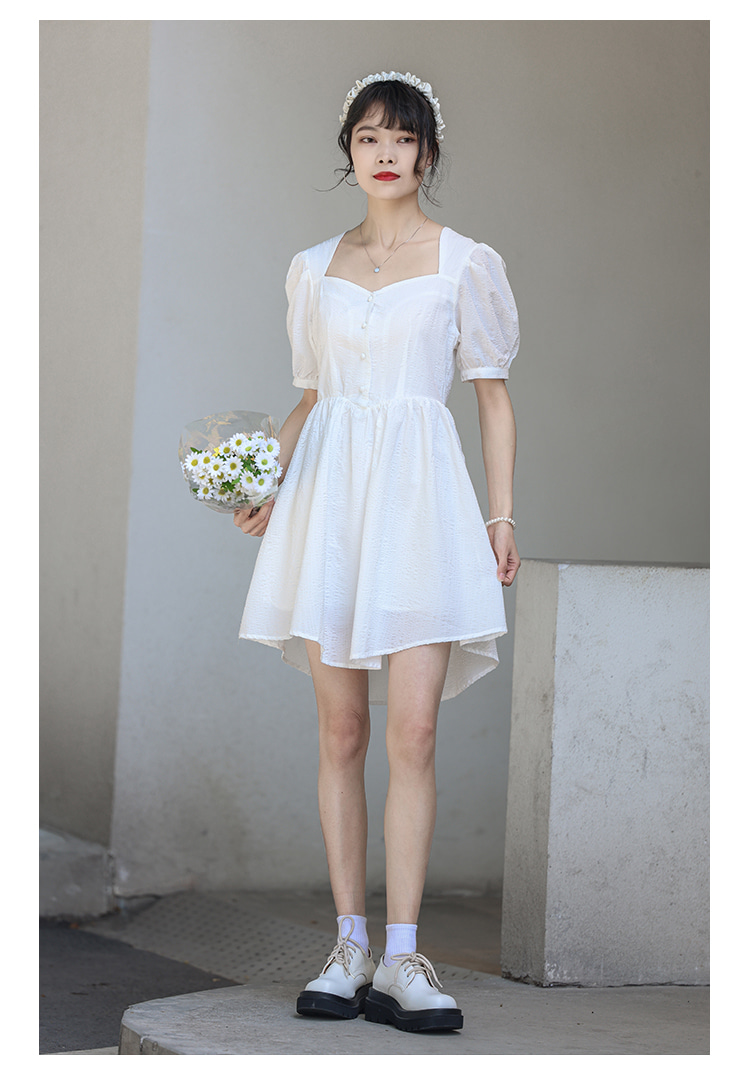 로맨틱 화이트 퍼프 미니원피스