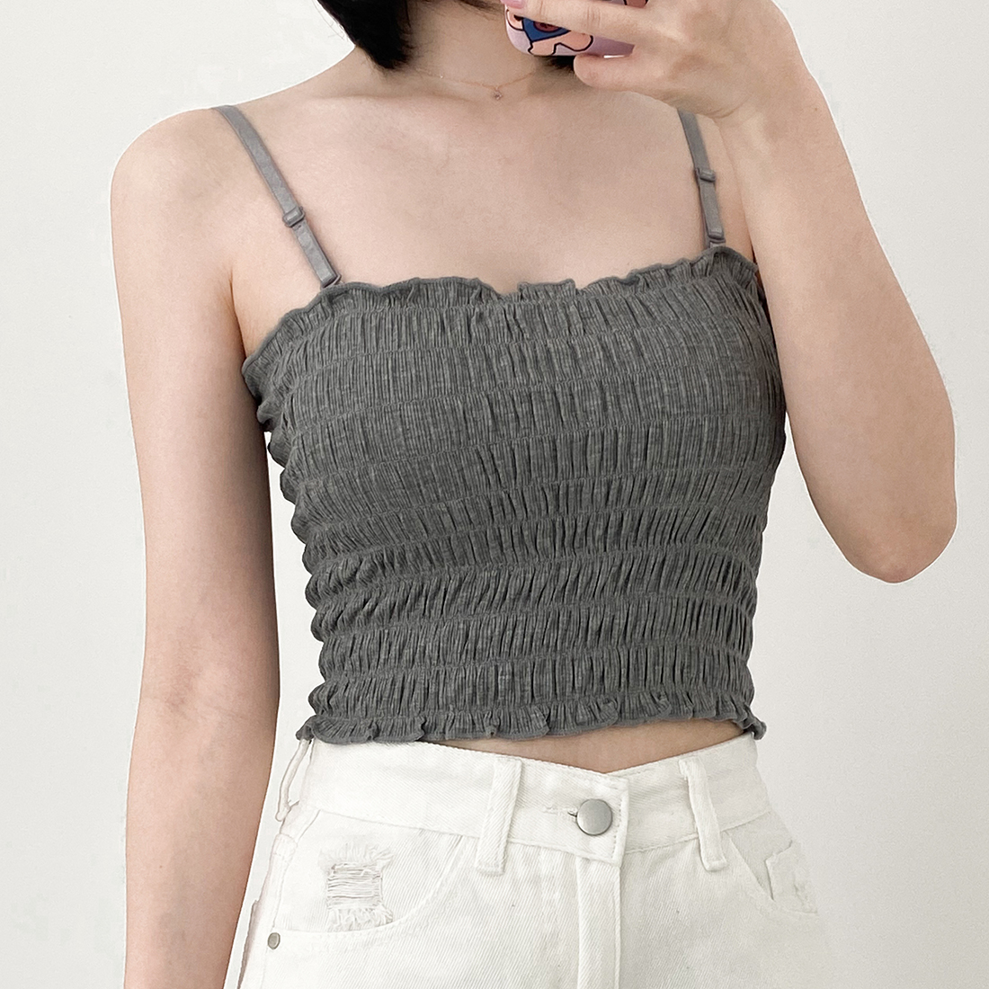 [특가/균일가/인기/캡내장/끈탈부착] 링클 스모크 주름 스퀘어 나시 브라탑
