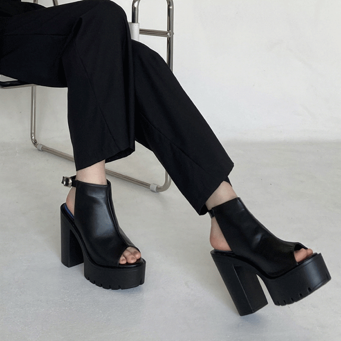 SwingBee_라운드 토오픈 하이힐 통굽 버클스트랩 샌들 (13cm/블랙)_sb00027