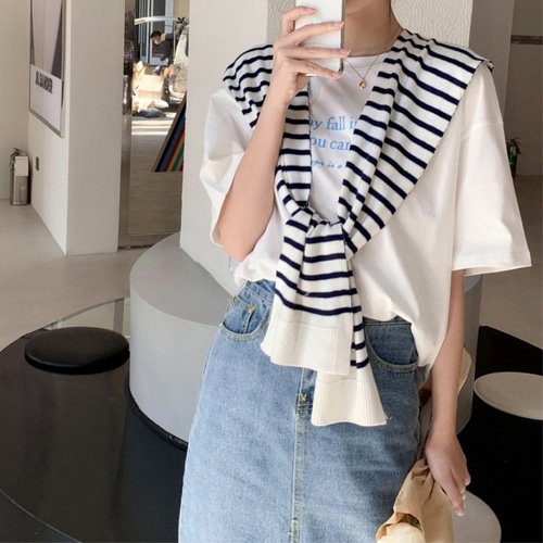 단가라 스트라이프 레이어드 어깨 숄 가디건 힙커버 니트 머플러 봄 여름 티 셔츠 원피스 블라우스 망토 하객룩 스카프