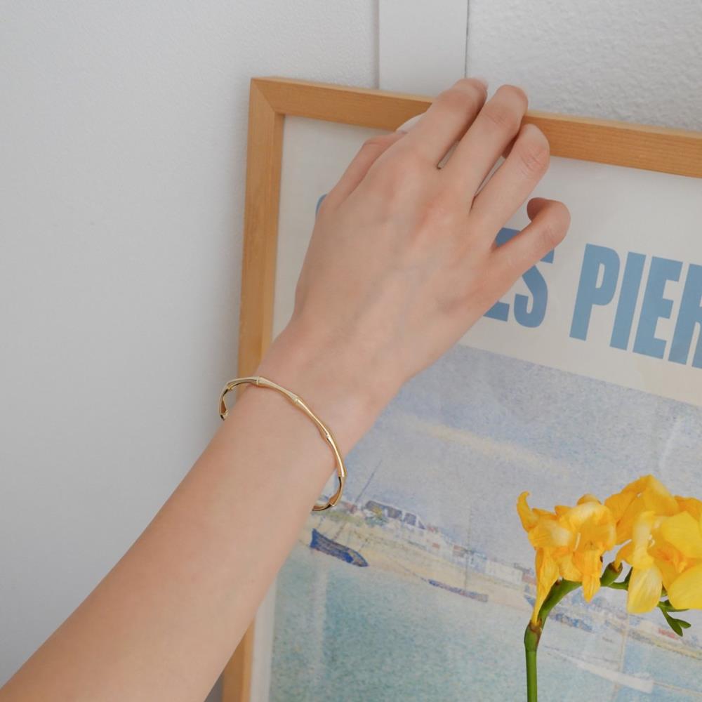 여자 밤부 뱀줄 얇은 뱅글 오픈 은색 반지