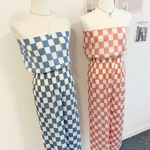 [유니크!]861 체커보드 탑 투피스 ys 체스 체크 밴드 팬츠 세트