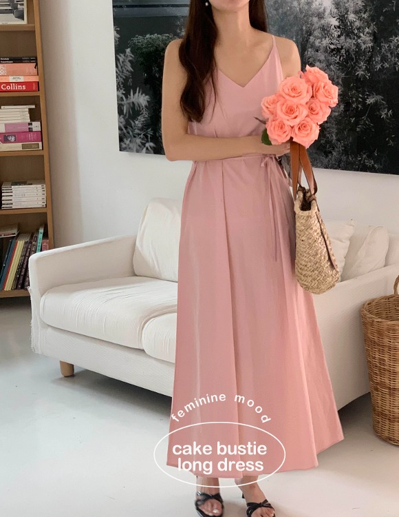 케이크 고급 끈나시 청순 a라인 롱 원피스