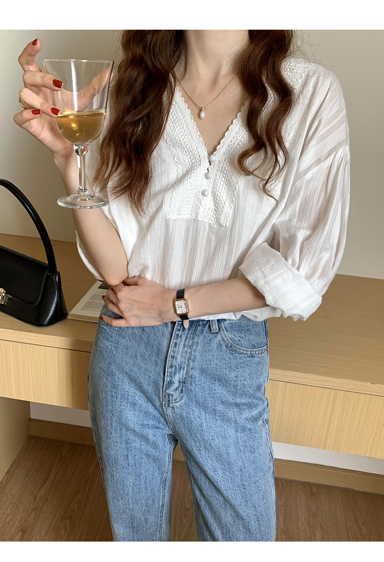 [🍂SML사이즈#3천장돌파]청순 레이스 브이넥 블라우스