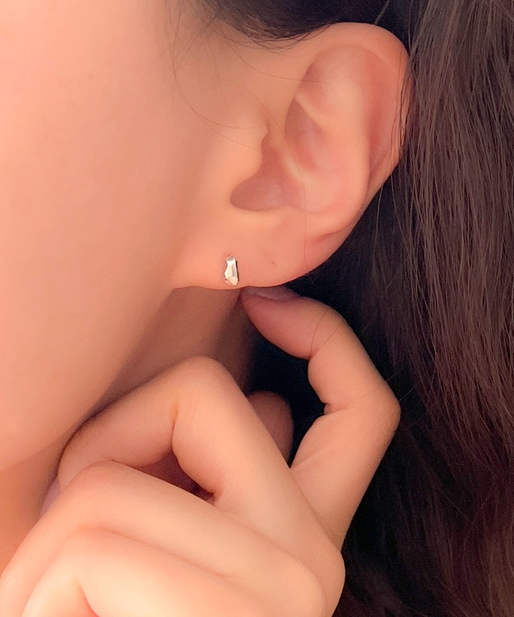 [무배] 실버925 미니 각진 물방울 스터드 귀걸이 (실버 로즈골드)