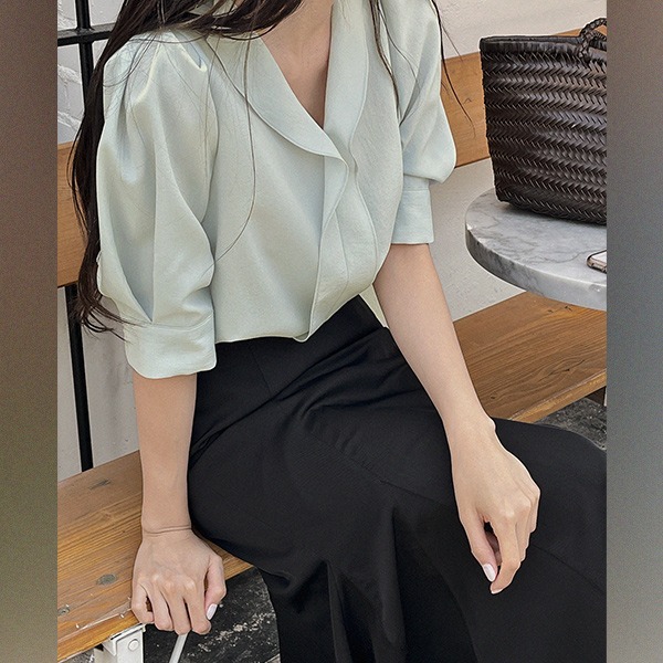 [MADE] 마로앤 브이넥 프릴 퍼프블라우스(44~99)