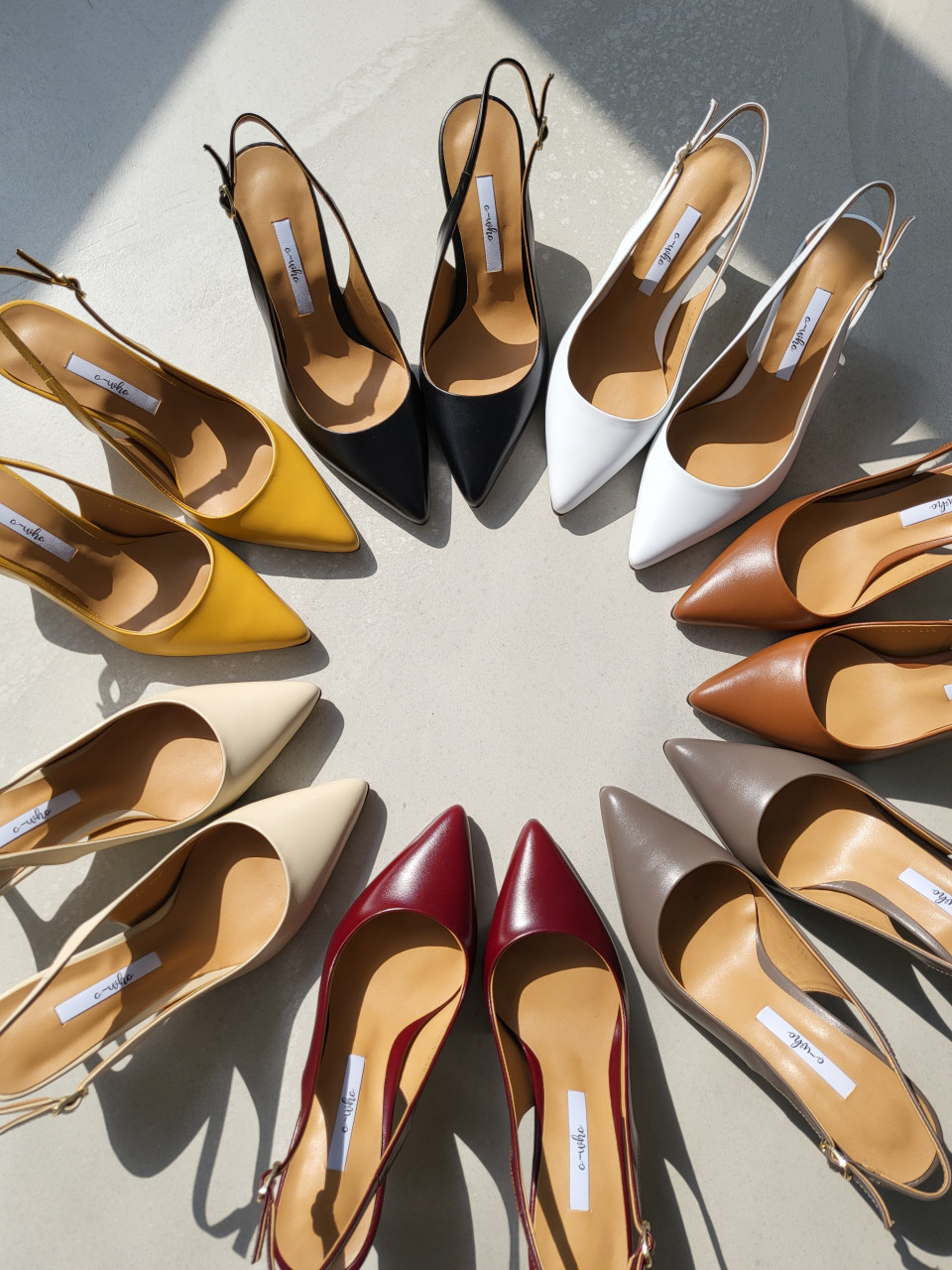 여성수제화 성수동수제화 7cm 가죽스트랩힐 가죽 발편한 스틸레토 슬링백 8컬러 미들