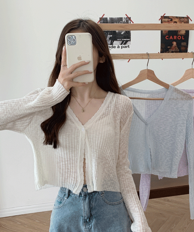 🚀주문폭주🚀 시스루 가디건 호캉스 바캉스 여름 필수템! 여리여리 파스텔 골지 물결 크롭 시스루 얇은 가디건(7color)