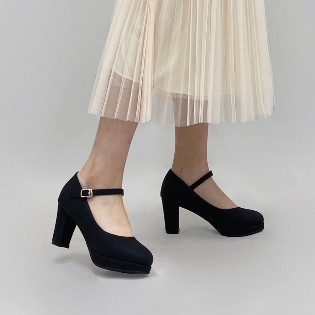 [둥근코작은발/당일발송] 천연 누벅 펌프스 통굽 스트랩 메리제인 힐 (7cm) SKZZ-1005