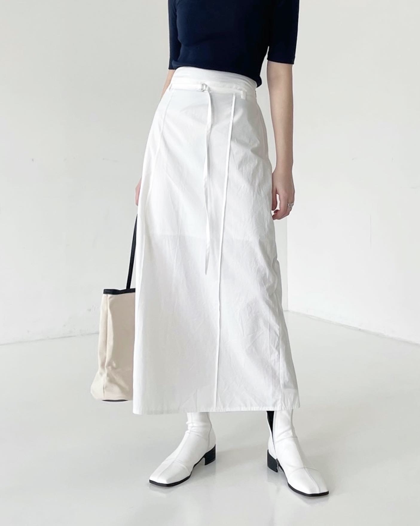 (set) 미네르 코튼 벨트 플레어 스커트 [5co] *블랙 당일발송