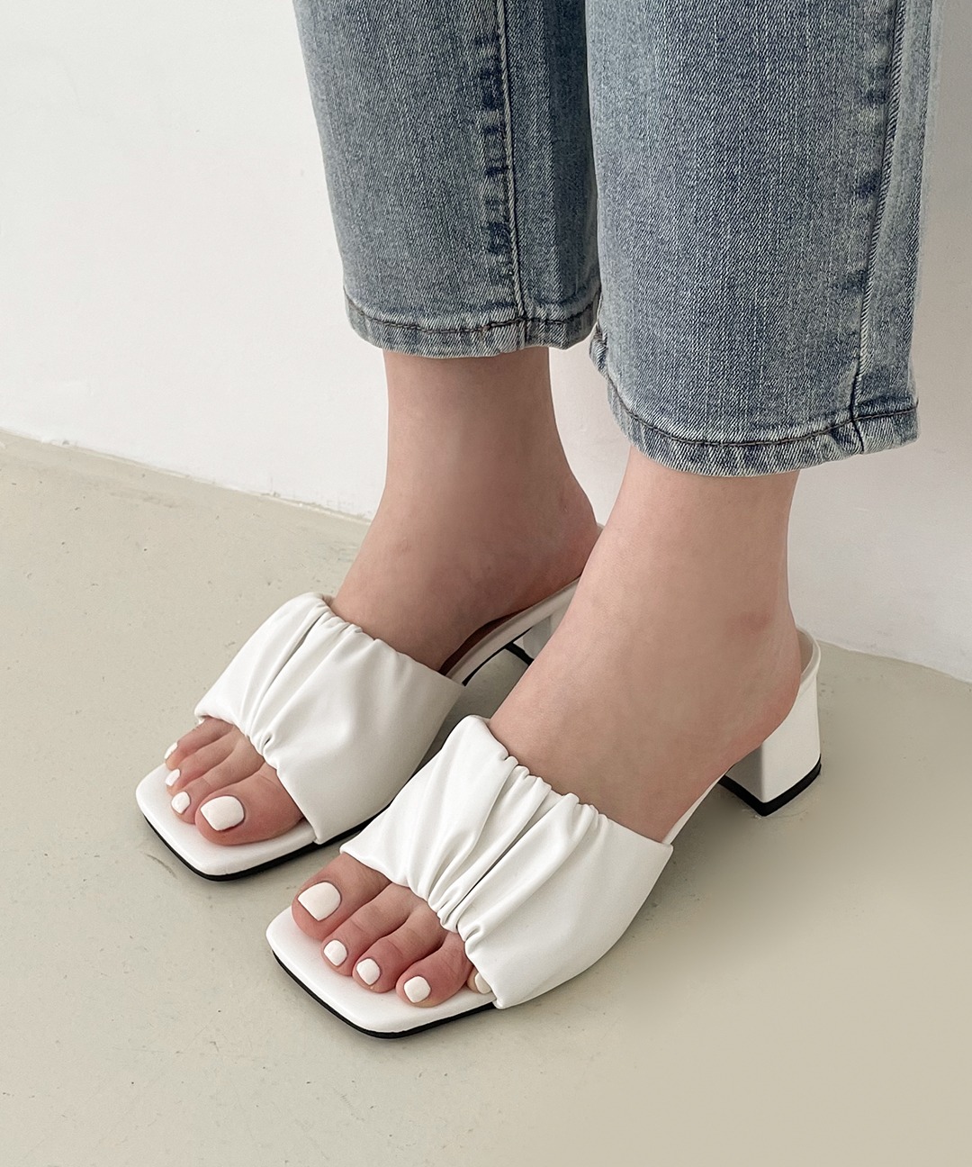 (자체제작+3cm/6cm) 레딘 셔링 밴딩 주름 뮬 블로퍼 슬리퍼