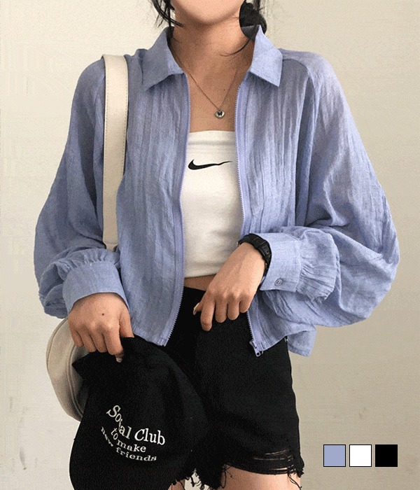 [무료배송] 한여름까지 햇빛차단, 린넨 시스루 크롭 거즈남방 집업 점퍼