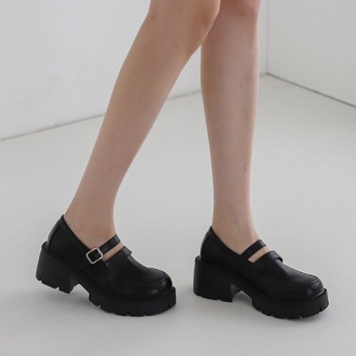 (당일발송)스트랩 메리제인 둥근코 통굽 로퍼힐 6cm_슈메이트[SM22-11]