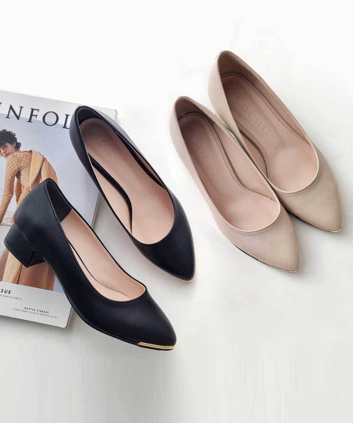 국내제작 225~265mm 발편한 빅사이즈 골드장식 청키굽 여성 정장 구두 펌프스 3cm