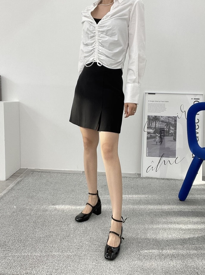 [ 에나멜 / 가죽 ] 라운드토 투스트랩 메리제인 미들굽 펌프스 ( 6.5cm )