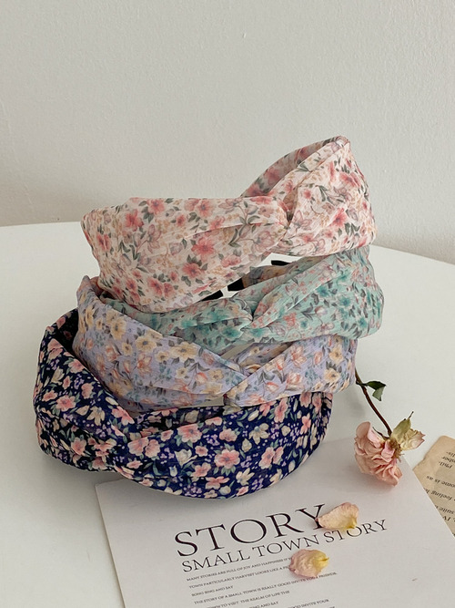 수수톤 플라워 꼬임 반다나 헤어밴드 4color