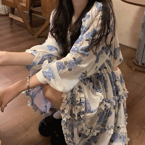 [봄원피스/여름신상] 소라 꽃 프릴 미니원피스 러블리 차이나넥 드레스 플레어 쉬폰 콩단추 A라인 숏원피스