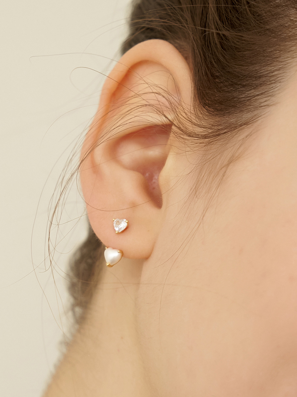 [실버925] 진주 큐빅 하트 이어자켓 귀걸이_EC1729