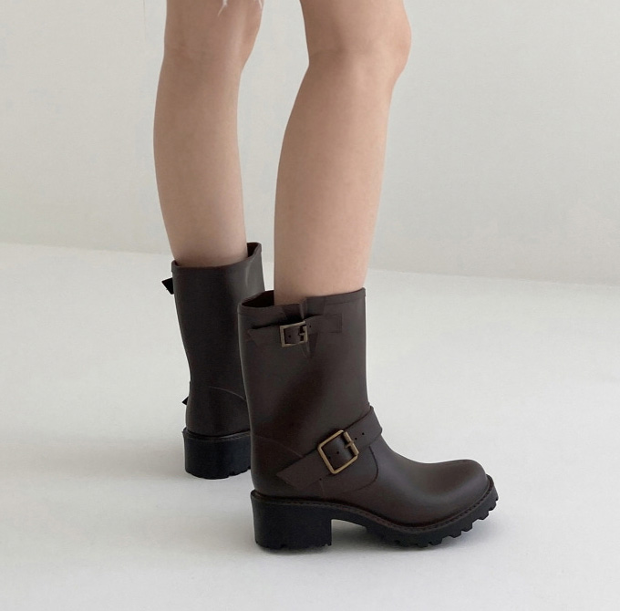 레이니 라운드 디커 벨티드 미들 레인부츠 4.5cm●