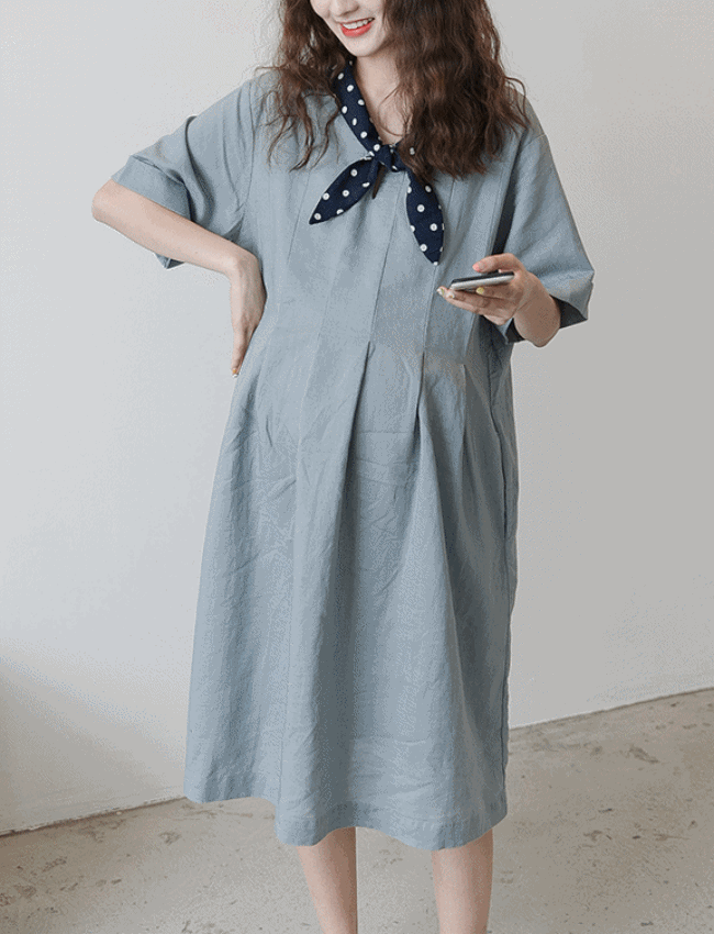 빅사이즈 여름하객룩 여름롱원피스 라운드넥 노카라 루즈핏 심플 린넨 퍼프 반팔 블라우스 롱원피스 빅사이즈 하객룩 여름코디