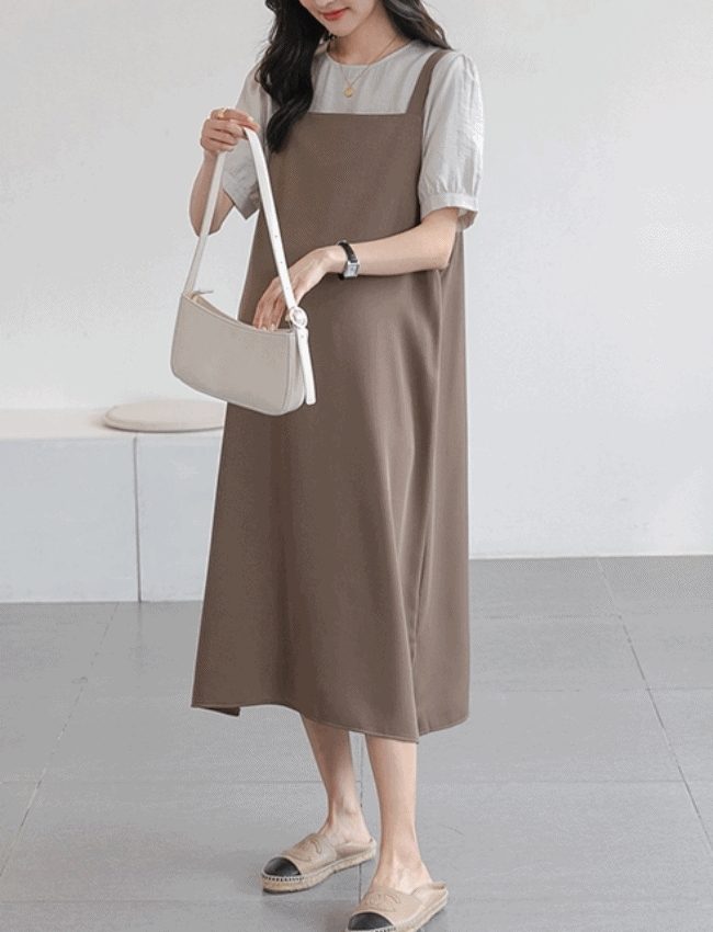[50%할인/당일출고/빅사이즈원피스/임산부원피스/세트]~2xl 뷔스티에원피스 민소매 나시롱 쉬폰원피스 브라운 조끼 일자원피스 노라인 통원피스 하객룩