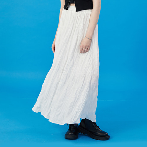 [베이비몬스터 루카 착용][27차 재입고] WOMEN 쿨링 냉장고 마몽 주름 플레어 롱스커트 [WHITE] 롱치마 ver.